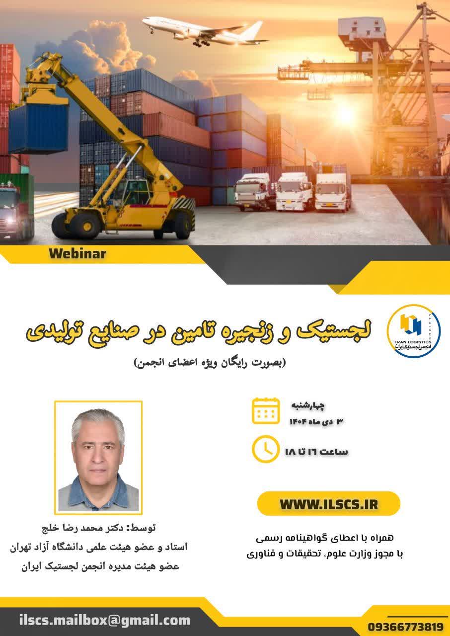 ۱۴۰۴/۱۰/۱ - وبینار آموزشی: لجستیک و زنجیره تأمین در صنایع تولیدی (ویژه اعضای انجمن بصورت رایگان )
